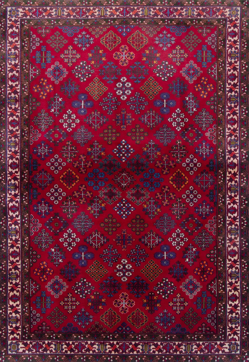 The Classic Joshaghan (Overall) Rug is a refined example of Persian village weaving, featuring a continuous and harmonious overall pattern rooted in the centuries-old traditions of Joshaghan design. This 30-year-old rug from Meymeh is entirely handwoven using hand-spun wool and natural plant-based dyes, producing a vibrant yet earthy palette with lasting durability.